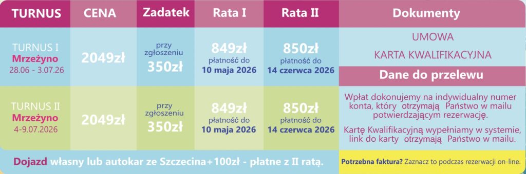 TRANSPORT: Dojazd własny lub zorganizowany autokar ze Szczecina (+100zł)